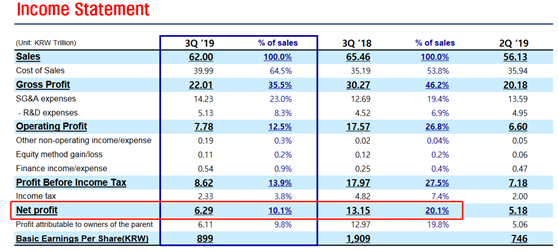 除了裁员,今年三星的三季度报也不怎么好看。近日,三星电子公布的三季度财报显示,在报告期内,三星电子的营收为62万亿韩元,同比下降了5.3%;营业利润为7.78万亿韩元,同比降低了55.7%;净利润下滑52%至6.29万亿韩元,2018年同期则有13.15亿韩元。