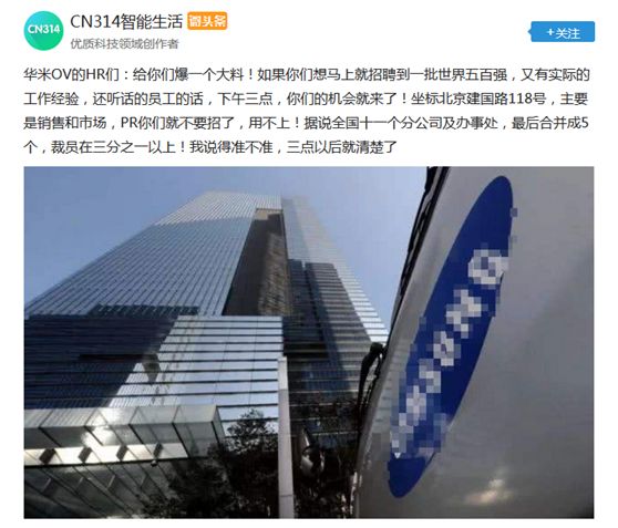 今日,一则网传消息称,三星将全国的11个分公司和办事处合并成5个,裁员人数达到了三分之一,裁掉的部门主要是销售和市场。