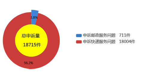 快递服务申诉的主要问题是快件丢失短少、快件延误和快件损毁,分别占申诉总量的29.5%、26.6%和18.9%。其中,环比增长的是快件延误,同比增长明显的是快件丢失短少和快件损毁问题。
