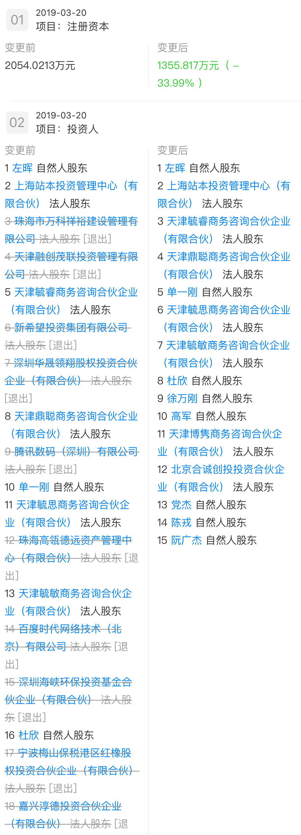 另外,22家投资人从链家撤出投资,包括万科A间接全资持股的珠海市万科祥裕(万科祥裕)建设管理有限公司、天津融创茂联投资管理有限公司、新希望投资集团有限公司、华兴资本旗下深圳华晟领翔股权投资合伙企业、腾讯数码(深圳)有限公司、高瓴资本旗下珠海高瓴资本德远资产管理中信、百度时代网络技术(北京)有限公司等。