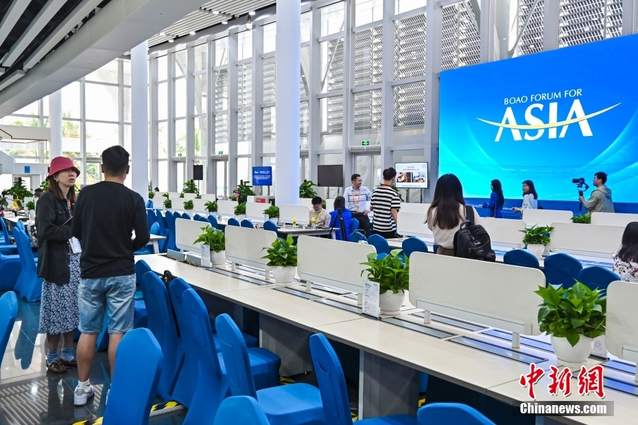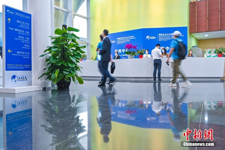 3月27日,博鳌亚洲论坛2023年年会新闻中心正式启用。博鳌亚洲论坛2023年年会3月28日至31日在海南博鳌以线下方式举行。截至目前,今年新闻中心注册记者已经超过1000人。新闻中心的建筑面积超过4000平方米,有平面媒体及网络媒体工作区、广播电视区、新闻发布厅和独立的采访间等区域。图为博鳌亚洲论坛2023年年会新闻中心前台。