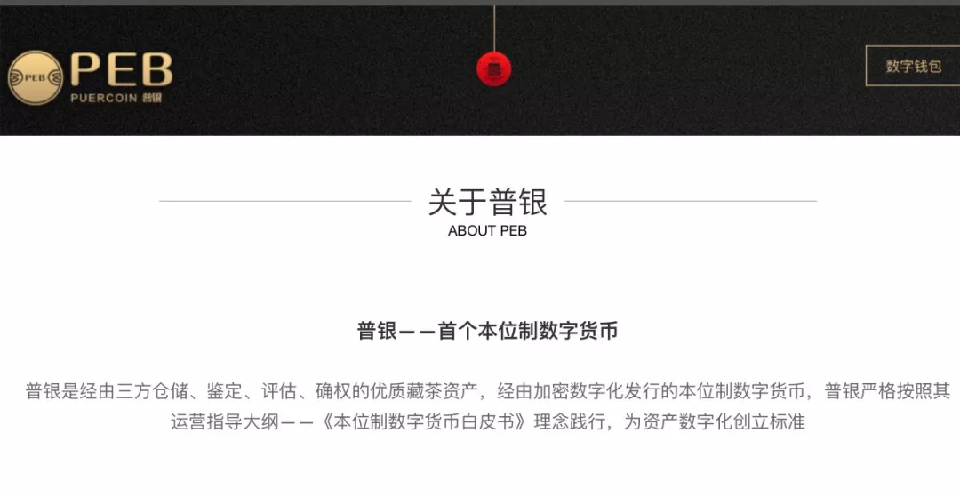 据其官网介绍:普银是经由三方仓储、鉴定、评估、确权的优质藏茶资产,经由加密数字化发行的本位制数字货币。据了解,其原发本位资产为10亿藏茶。