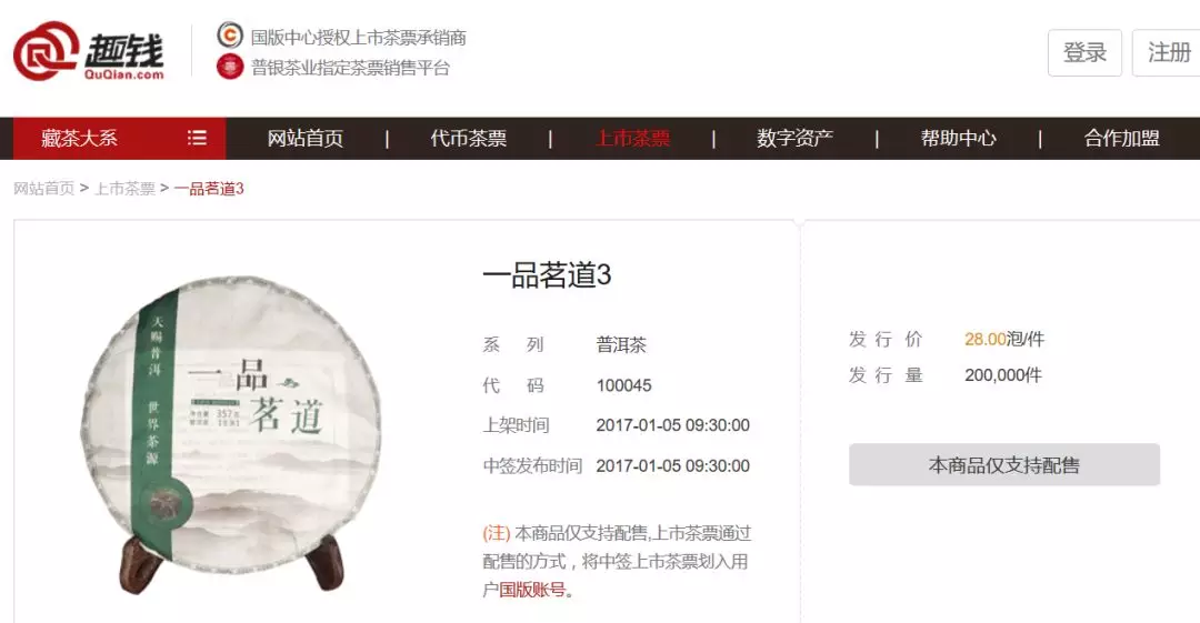 基金君发现,趣钱网的“上市茶票”均无法直接购买,而是显示“本商品仅支持配售”。