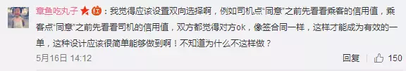对此,一些人认为有些“矫枉过正”。80后的付鹏在上海开了三年的顺风车,几乎每天上下班都会接一两单。他表示顺风车司机并不是专职司机,在接单时也希望有双向选择。“例如一些乘客有不良习惯,曾频繁在车上制造垃圾,或因个人原因与司机发生口角,如果看到了提示,我就不会优先考虑他们。以后只有一个评分的话,我无法看到评分背后的缘由,这样会阻碍我的判断。”