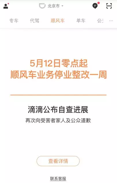 5月16日,滴滴公布阶段整改措施,称滴滴顺风车业务已于5月12日凌晨下线整改,并声明将在顺风车业务重新上线前全部完成整改措施。措施包括:下线所有个性化标签和评论功能,个人信息仅自己可见;车主接单前须人脸识别,以及暂停22点-6点期间的订单。