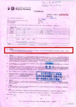 这样的说法让牛先生感到十分气愤,他拿出当时与北京豪骏行汽车销售服务有限公司签署的《汽车销售合同》,在“品质保证”一项中明确写着,“甲方保证向乙方出售的车辆为全新原装车辆,车辆完全符合出厂质量规格,并且符合乙方所订购的车辆装备要求。”