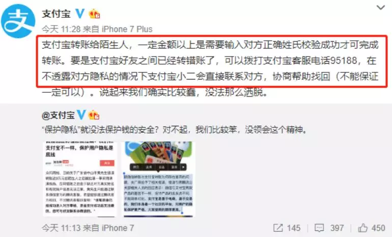 手滑转错账要不回钱?支付宝怼微信支付,保护隐私就没法保持钱的安全?