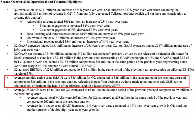 与Facebook类似,推特此次大跌的背后也是不及预期的财报数据。本周五盘前,推特发布今年第二季度财报。其中,第二季度推特月度活跃用户减少且业绩不佳。
