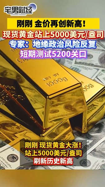 刚刚!现货黄金站上5000美元 专家:短期测试5200美元关口|宅男财经