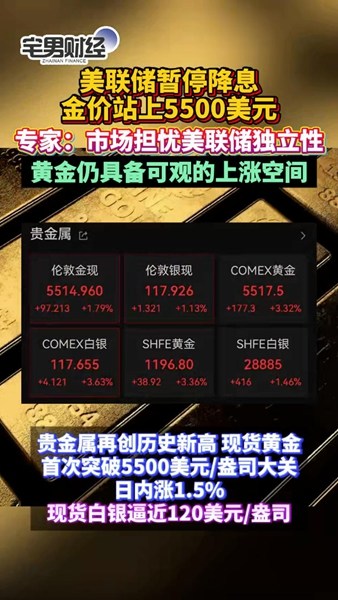 站上5500美元!专家:黄金仍具备可观的上涨空间|宅男财经