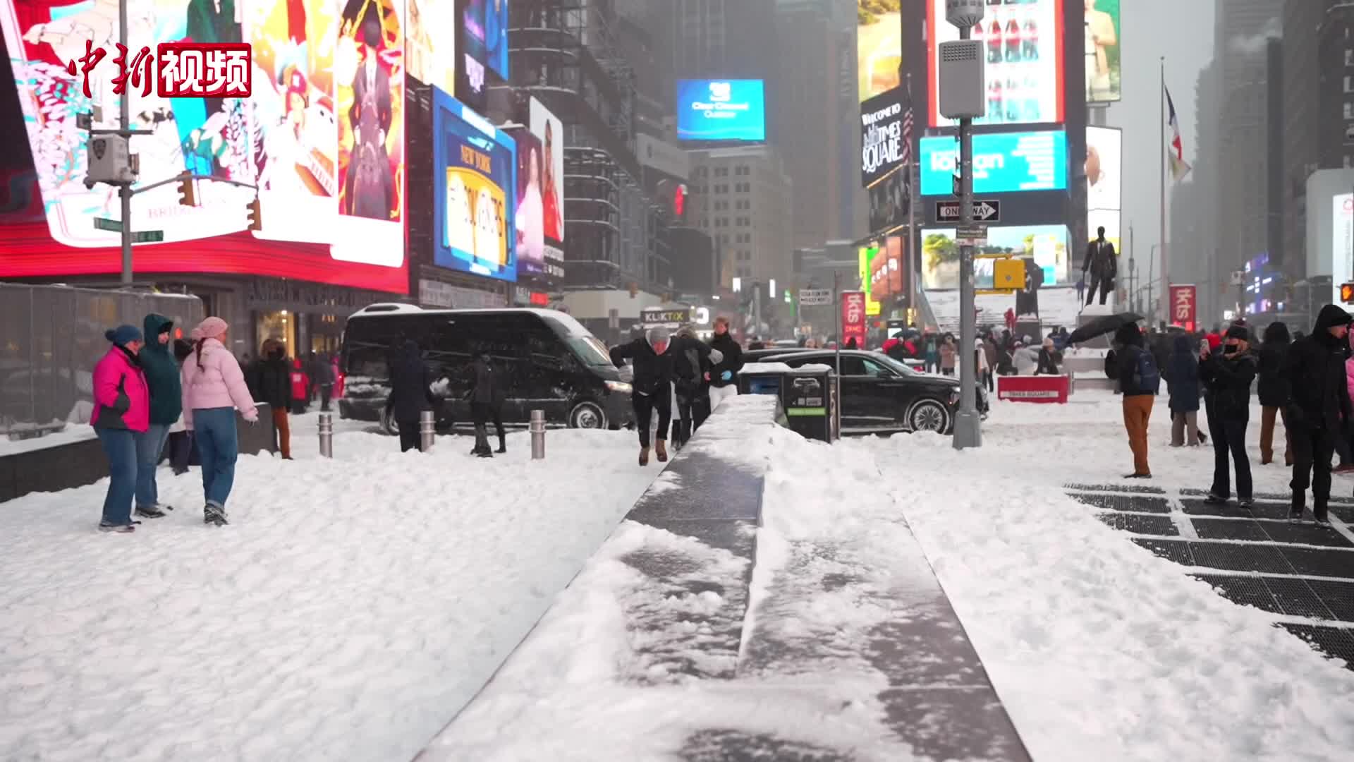 纽约强降雪 市政除雪紧市民玩雪忙