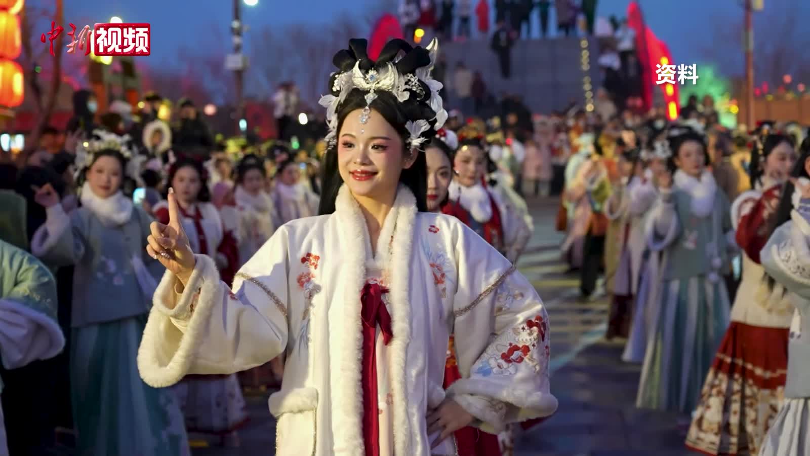 汕头民俗活动路训现场 女生眉眼如画 神似敦煌壁画里的古典美人