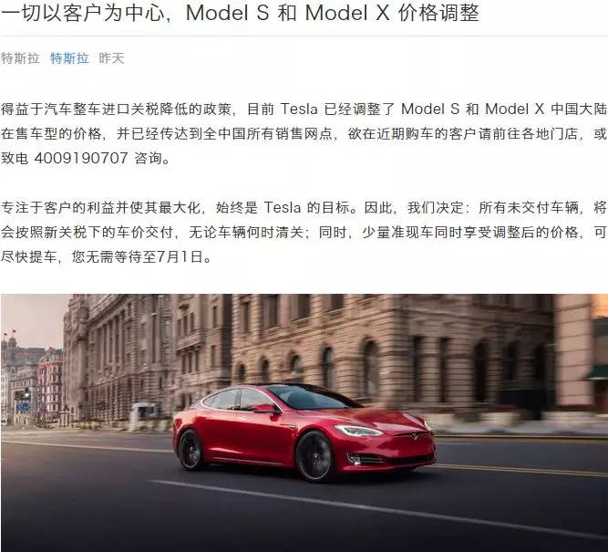 ▲此前特斯拉降价的通知