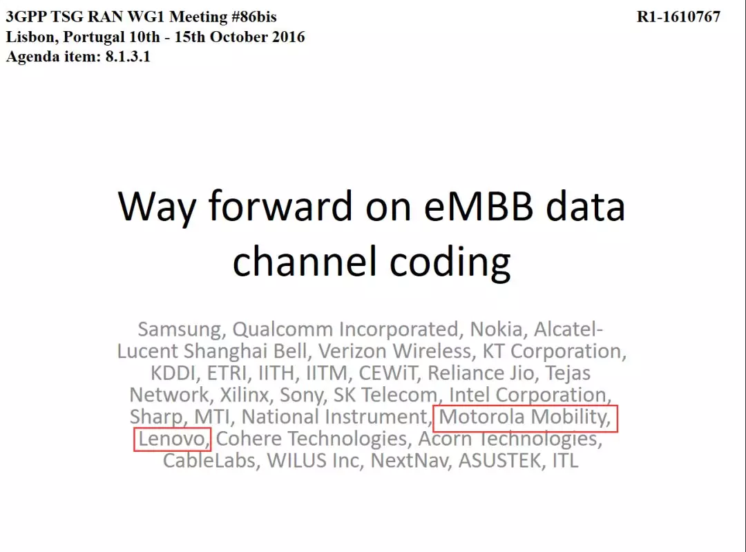 可以看到,在这次会议上,联想选择支持将LDPC作为eMBB数据信道的唯一编码方案。