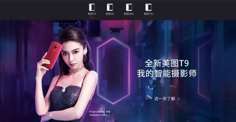 ▲美图手机代言人Angelababy 来源:美图手机官网