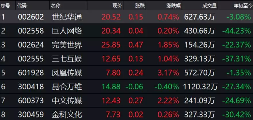 今年以来,在游戏行业的艰难环境与A股弱势的情况下,网游相关上市公司今年以来全部呈下跌状态,30余家A股上市公司跌超30%。