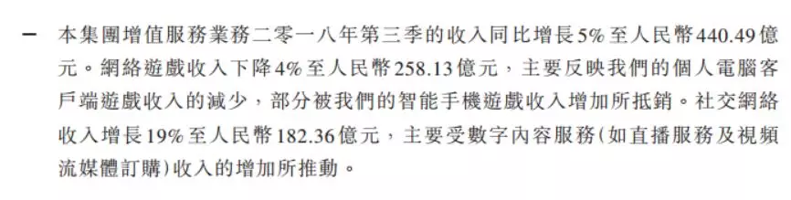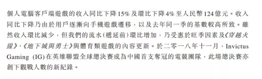 腾讯解释,这主要是个人电脑客户端游戏用户减少所致,部分被智能手机游戏业务营收增长抵消。