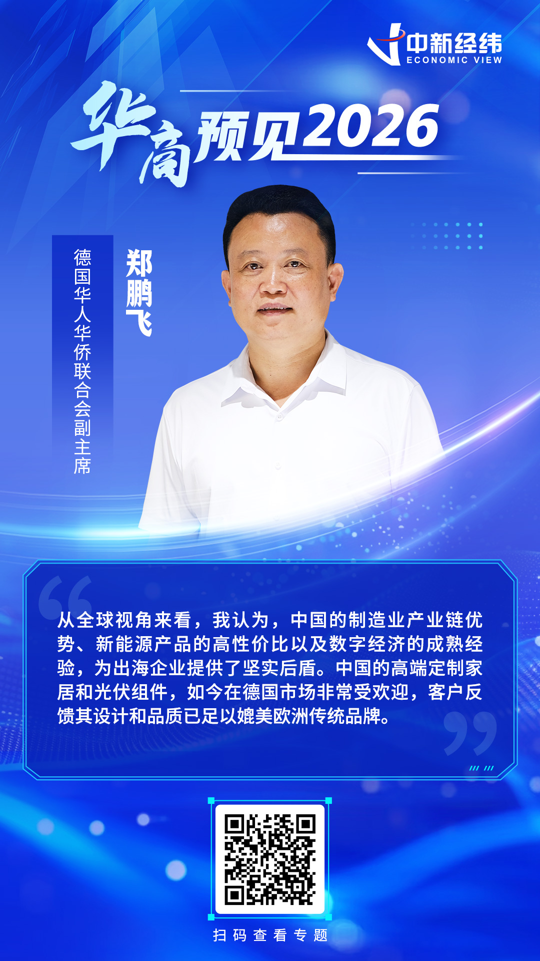 【德国华人华侨联合会副主席郑鹏飞】从全球视角来看,我认为,中国的制造业产业链优势、新能源产品的高性价比以及数字经济的成熟经验,为出海企业提供了坚实后盾。中国的高端定制家居和光伏组件,如今在德国市场非常受欢迎,客户反馈其设计和品质已足以媲美欧洲传统品牌。(中新经纬APP)