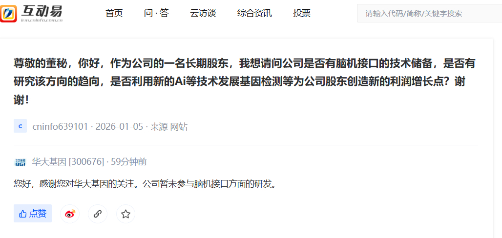 V观财报丨华大基因:暂未参与脑机接口方面研发