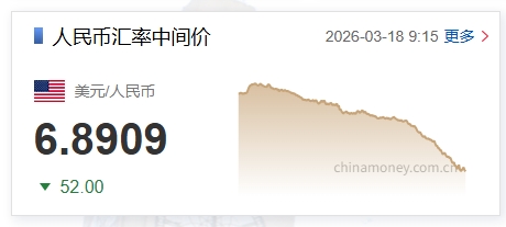 【人民币兑美元中间价上调52个基点】人民币兑美元中间价报6.8909,上调52个基点。(中新经纬APP)