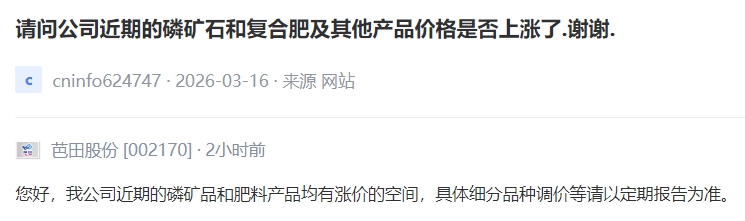 V观财报丨芭田股份:公司近期的磷矿品和肥料产品均有涨价的空间