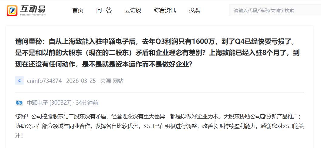 V观财报丨中颖电子:控股股东与二股东没有矛盾