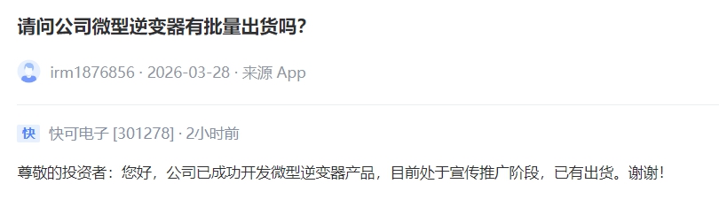 V观财报丨快可电子:公司已成功开发微型逆变器产品,已有出货