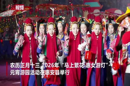 3月1日农历正月十三, 2026年马上繁花惠女游灯元宵游园活动在福建泉州惠安县举行。近千名惠安女身着传统服饰...